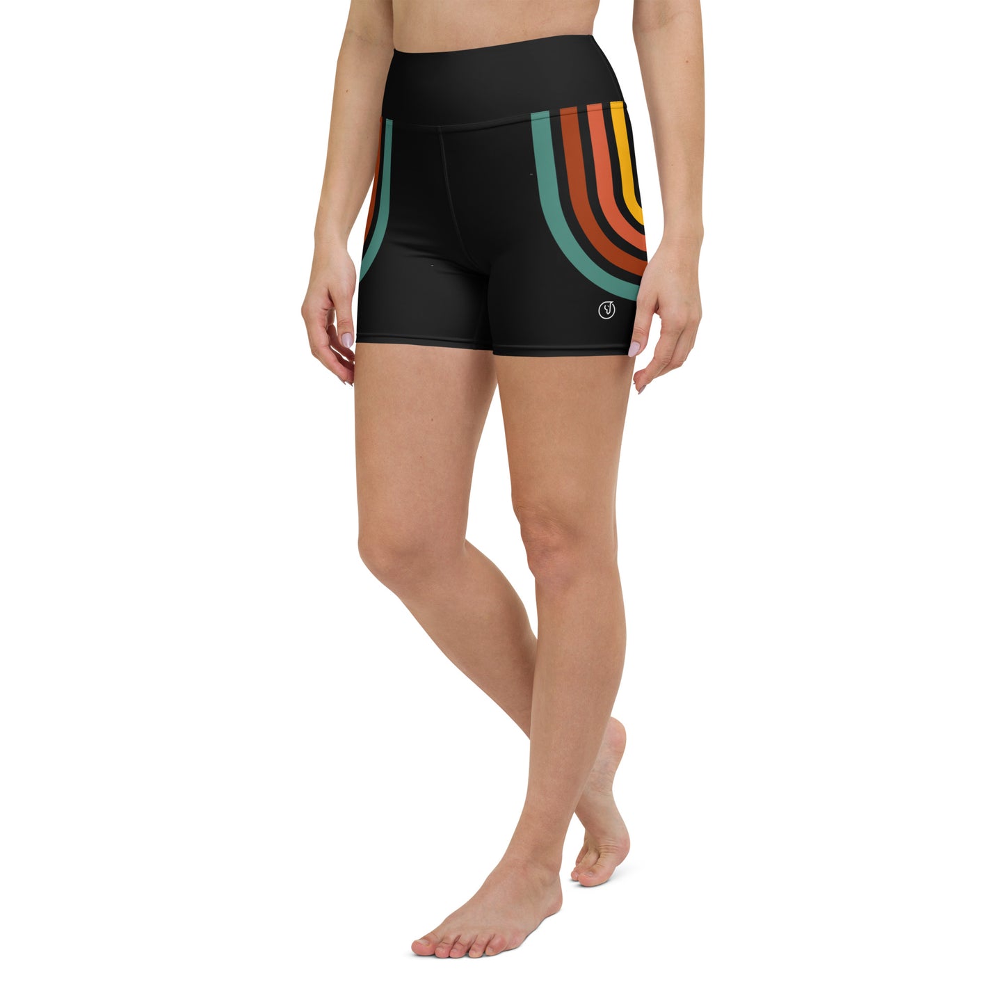 High waistband spandex shorts with soft microfiber yarn, perfect for active workouts like yoga or high intensity exercises.