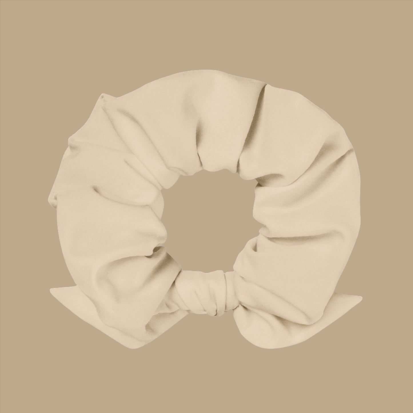 Keep your hair in check with our eco-friendly recycled sand brown bow scrunchie.